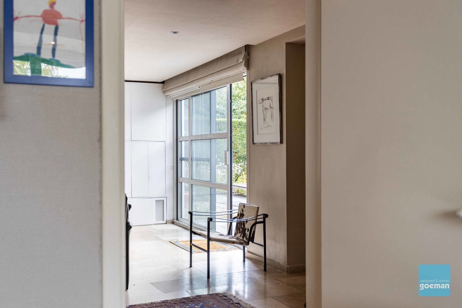 De tuin is volledig afgesloten, hier geniet je van zon of schaduw in alle privacy. De hoekligging van het perceel zorgt voor extra ruimte gevoel. En ook de wagens kunnen steeds geparkeerd worden.
