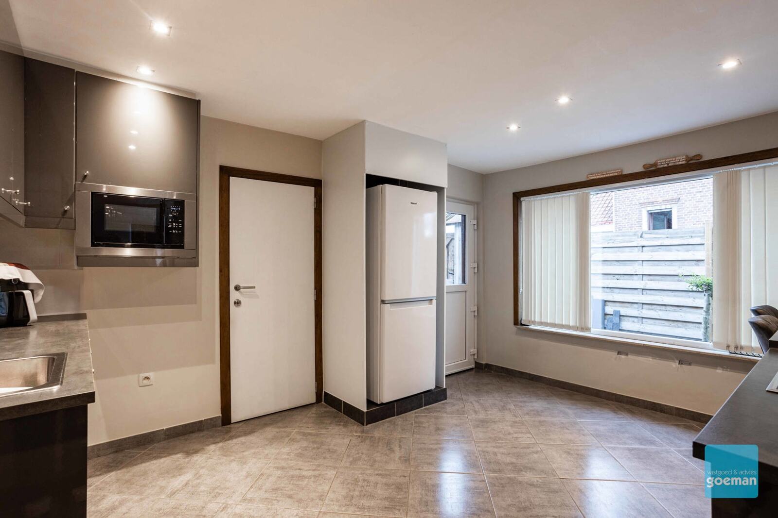 Aansluitend ligt de vernieuwde keuken, uitgerust met alle toestellen en voldoende werkruimte, met directe toegang tot het terras en de zuidgerichte tuin, waar je de hele dag door van de zon kunt genieten.